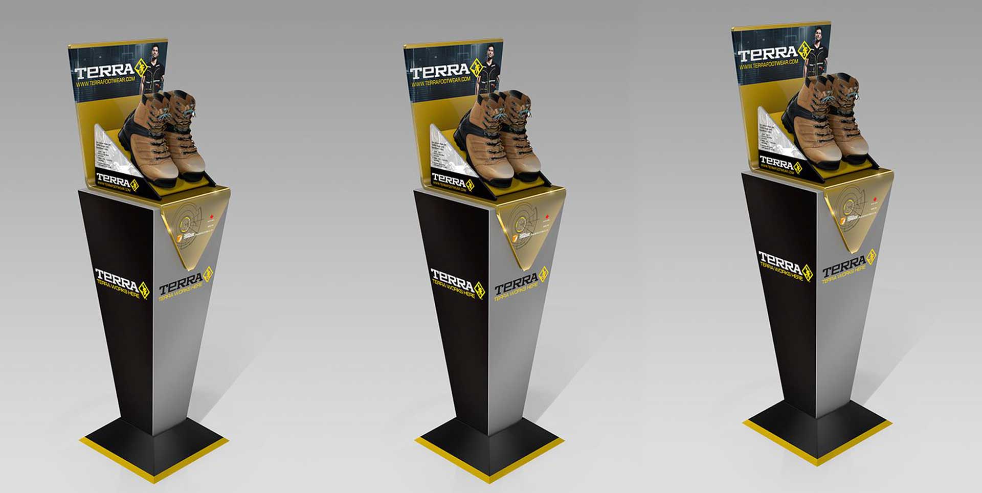 Ahşap, pleksi, metal, karton vb gibi malzemelerden üretimi yapılan satış standları, ürünün çeşidine göre farklı ebat ve tasarımla çok çeşitlilik göstermektedir.